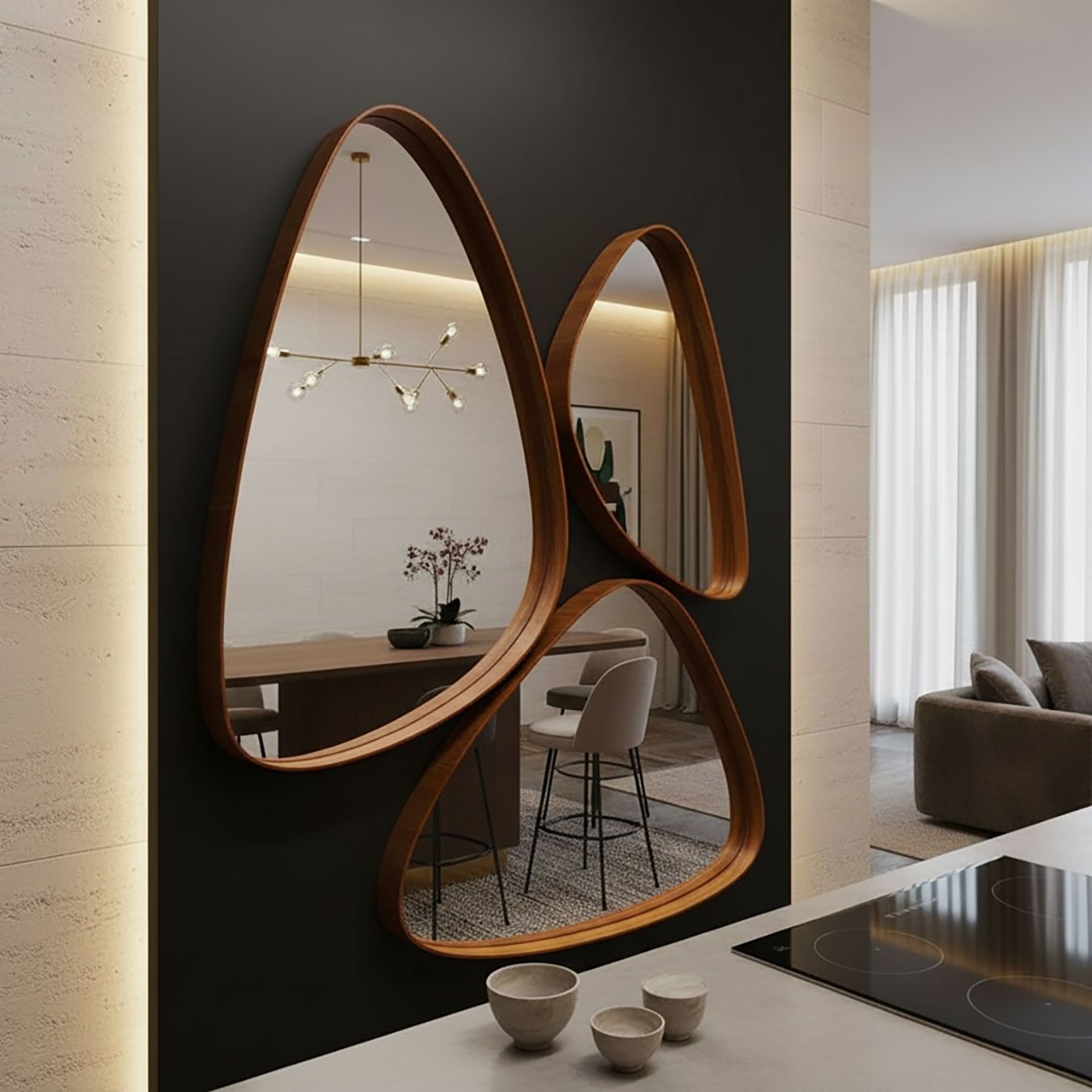 Kit de Espelhos Orgânicos Elegância e Movimento para Paredes que Contam Histórias