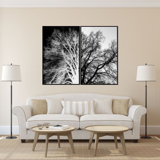 Conjunto Quadros Preto e Branco Árvore Seca Positivo Negativo 160x120 cm