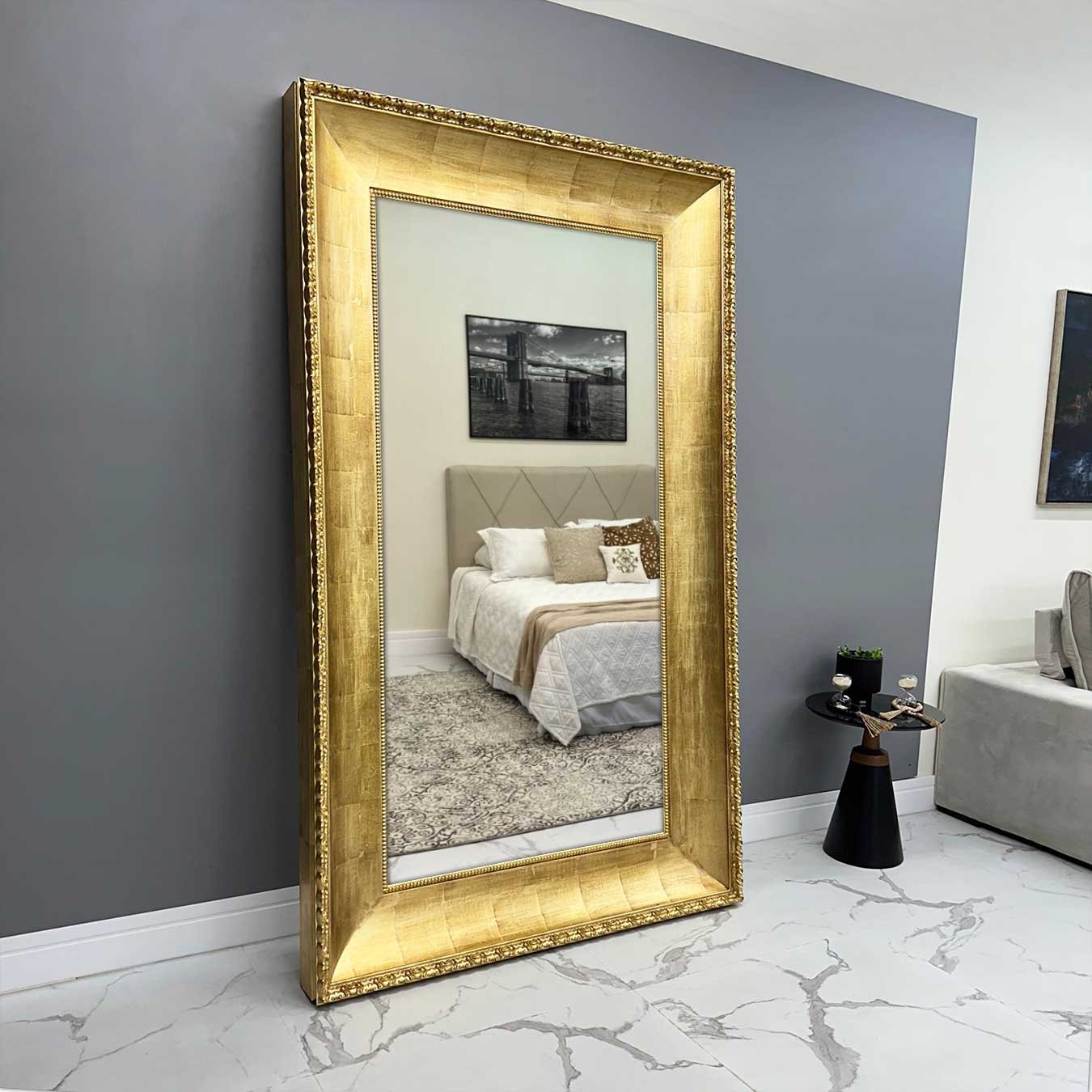 Espelho Clássico Imperium Dourado Folheado a Mão Luxo e Exclusividade 150x250 CM