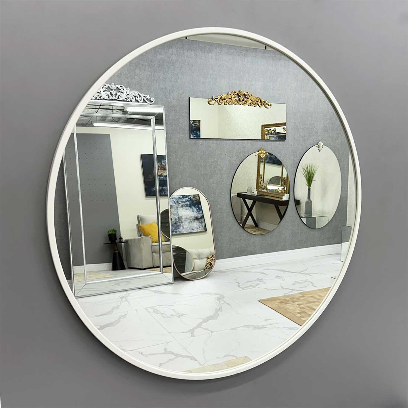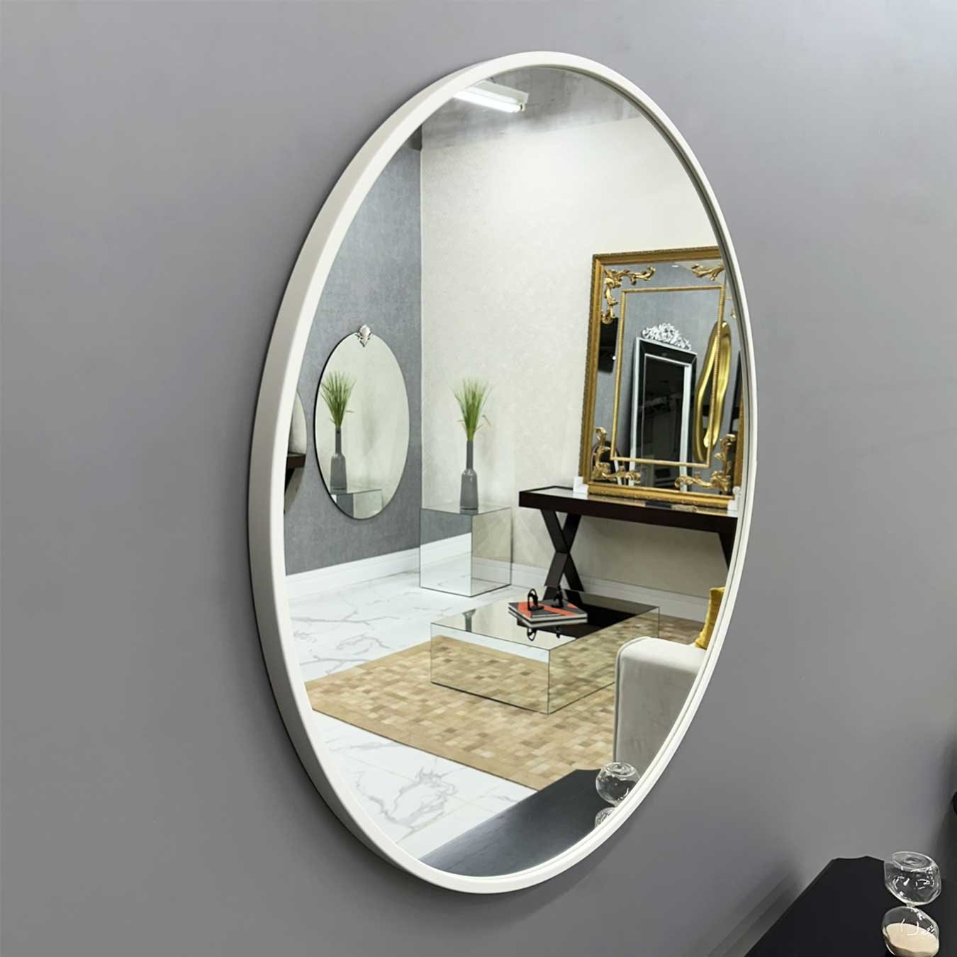 Os Espelhos nunca saem de moda na Decoração e a tendência que segue o Espelho Redondo com Moldura Branca ganha cada vez mais espaços na sua casa. Versátil, o Espelho Redondo com Moldura em MDF é poderoso na decoração, e você ainda pode escolher a cor da moldura e o tamanho que mais combina com seu espaço. Seja no banheiro, no hall de entrada, na sua sala, ou no closet, ele vai unir o útil, com um toque refinado de agradável e completar sua decoração com muito estilo e bom gosto.