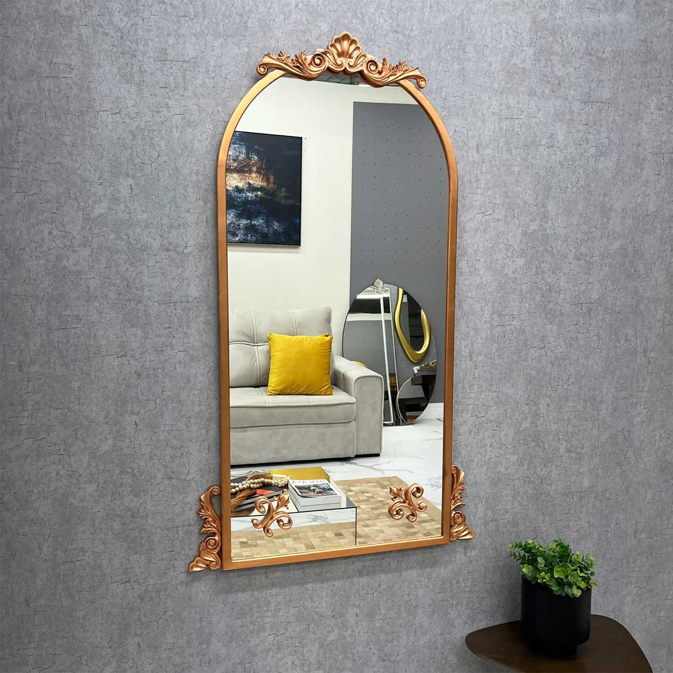 O acabamento folheado à mão destaca os detalhes da moldura, entregando um visual refinado com inspiração clássica (ornamental), perfeito para compor desde ambientes tradicionais até propostas mais contemporâneas que pedem um ponto de destaque. Use como peça principal no hall de entrada, acima de aparadores, em salas, quartos, closets ou corredores, elevando instantaneamente o nível da composição.