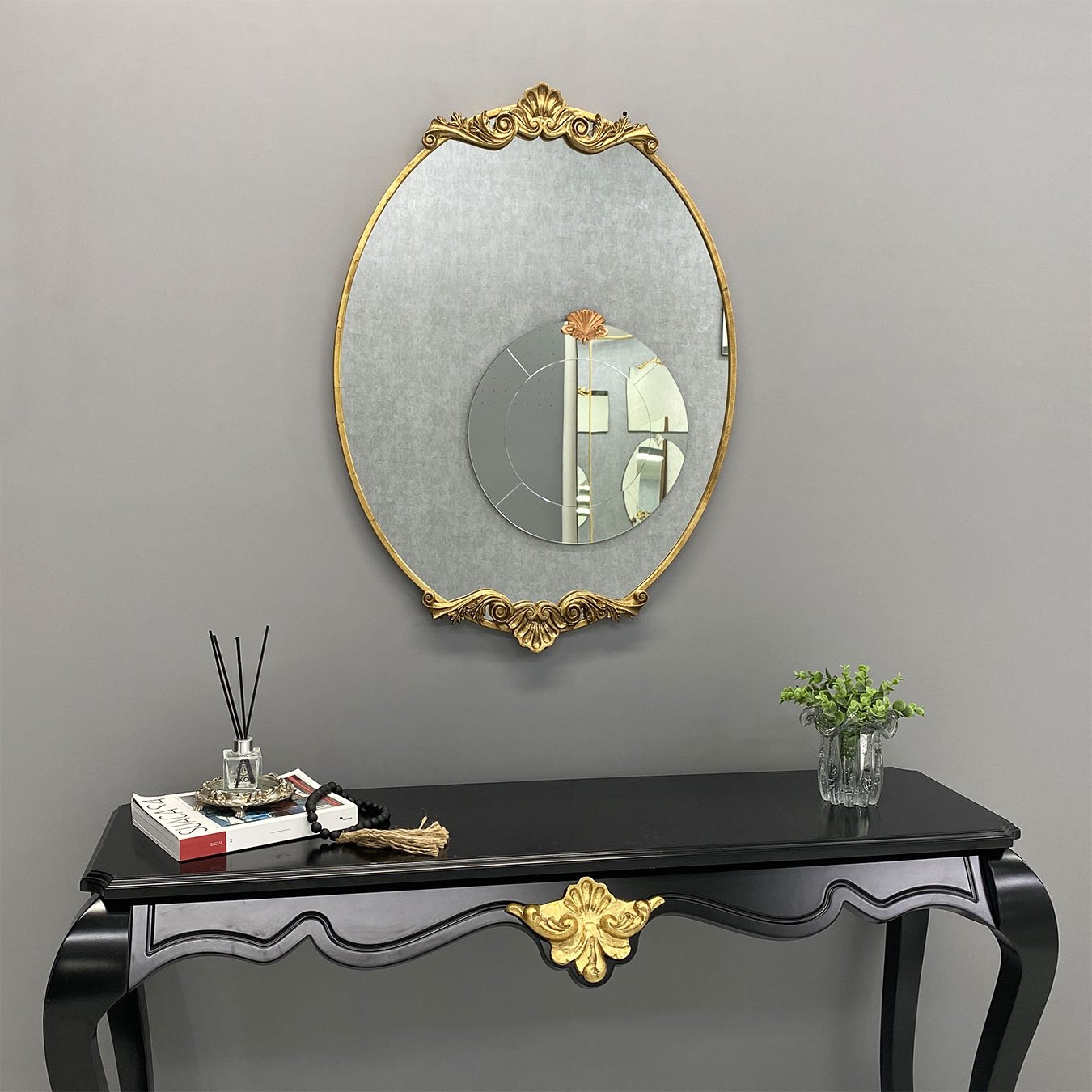 Espelho Oval Estilo Clássico com Moldura Dourada Folheada: Classe e Elegância