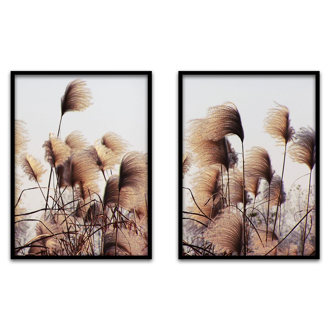 Kit 2 Quadros Capim dos Pampas e Flores Secas de Junco com Moldura e Vidro