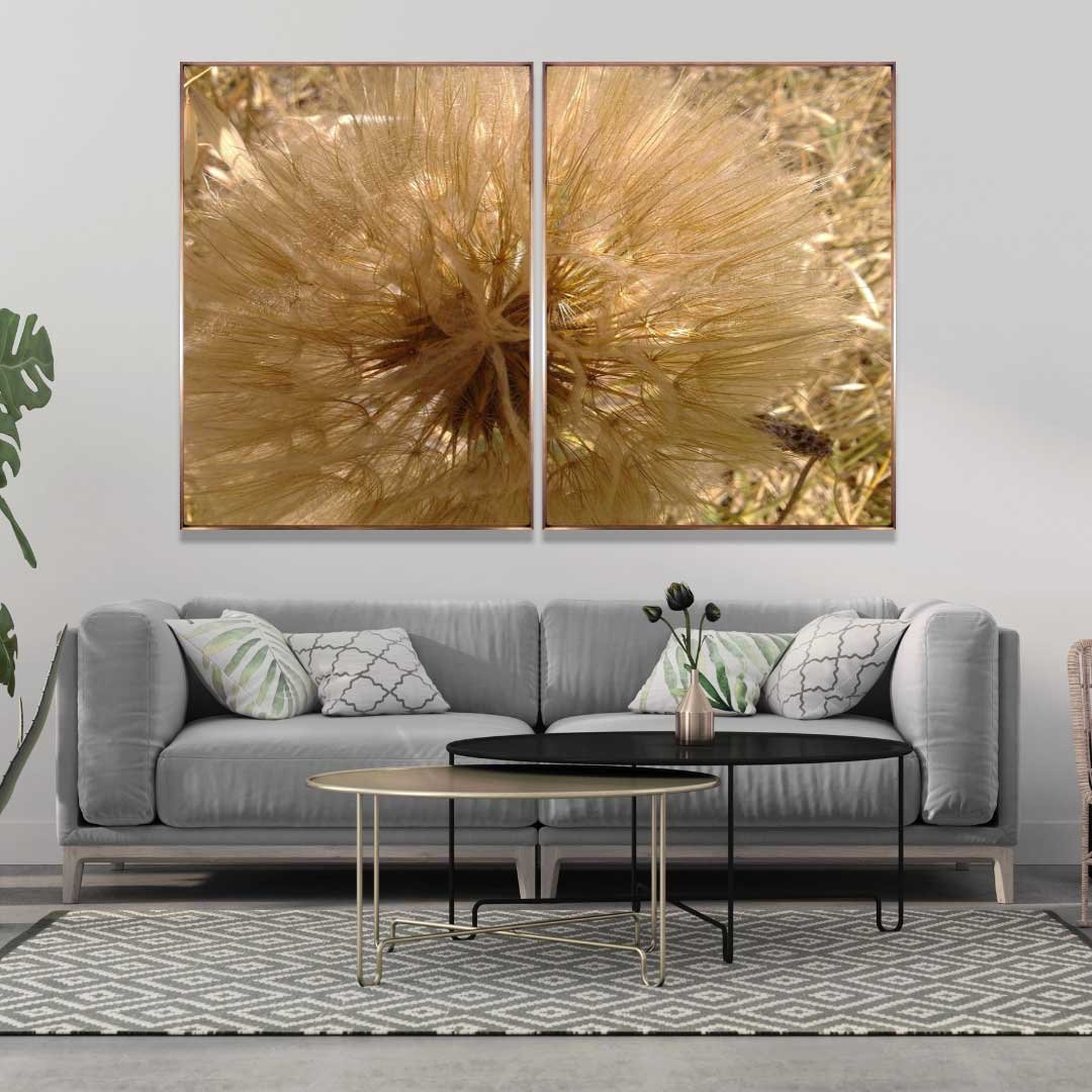 Kit de Quadros Flor Dente de Leão com Moldura Chanfrada 185x120 cm