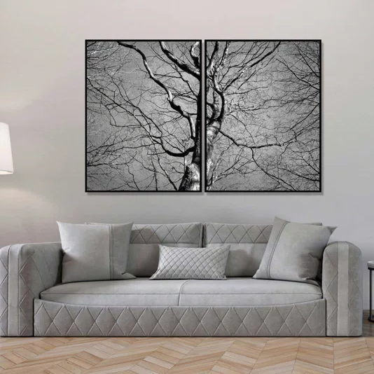 Par de Quadros em Preto e Branco Árvore Sem Folhas Kit com 2 Quadros