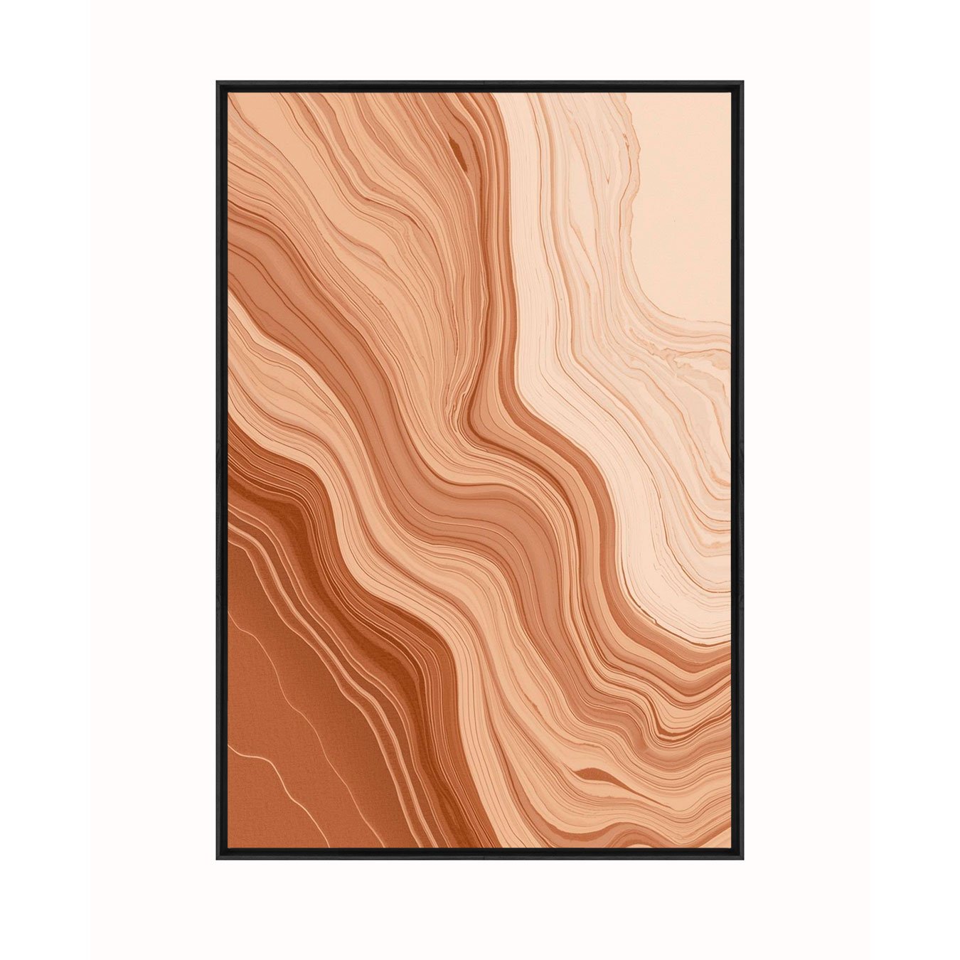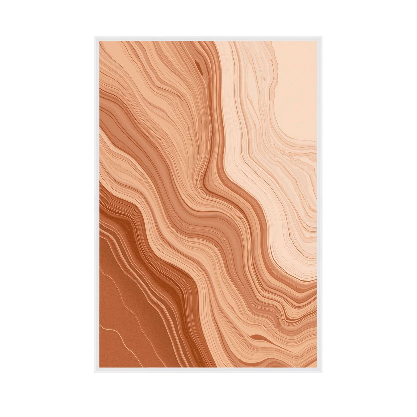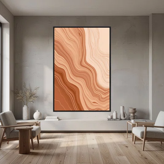 O Quadro Abstrato Marmorizado em Tons Terracota e Laranja Queimado é a peça ideal para quem busca criar uma galeria de arte coesa e cheia de personalidade. Esta variação apresenta um padrão de camadas rítmicas, em que os tons de terracota, laranja pêssego e creme se organizam em ondas que sugerem uma "escadaria" visual de cores.
