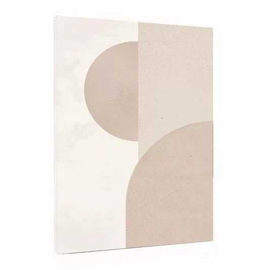 O Quadro Abstrato Geométrico com Formas Circulares em Tons Bege e Creme Neutro é uma peça de arte contemporânea que se destaca pelas formas circulares e arcos curvos sobrepostos, criando uma composição fluida e dinâmica.