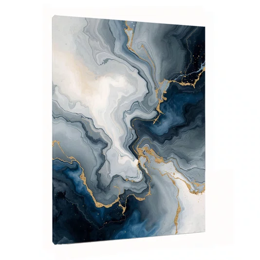 Eleve sua decoração de interiores com o quadro abstrato mármore azul e dourado veias fluidas, peça premium da Decore Pronto que captura a essência do luxo moderno. Com padrões orgânicos inspirados em mármore natural, exibe veias douradas metálicas vibrantes fluindo entre tons intensos de azul-marinho, cinza e branco, gerando um efeito dinâmico de profundidade e movimento.