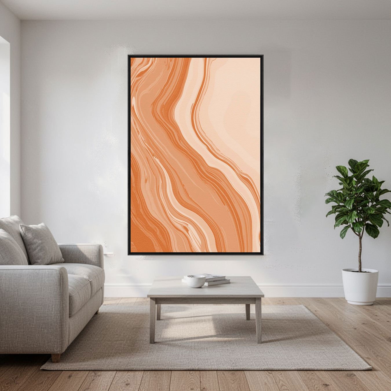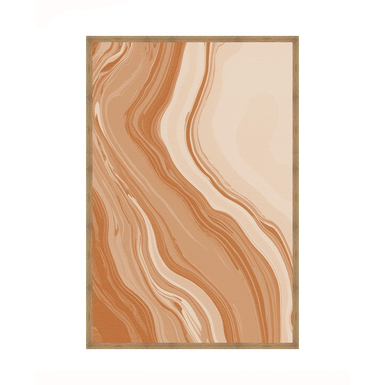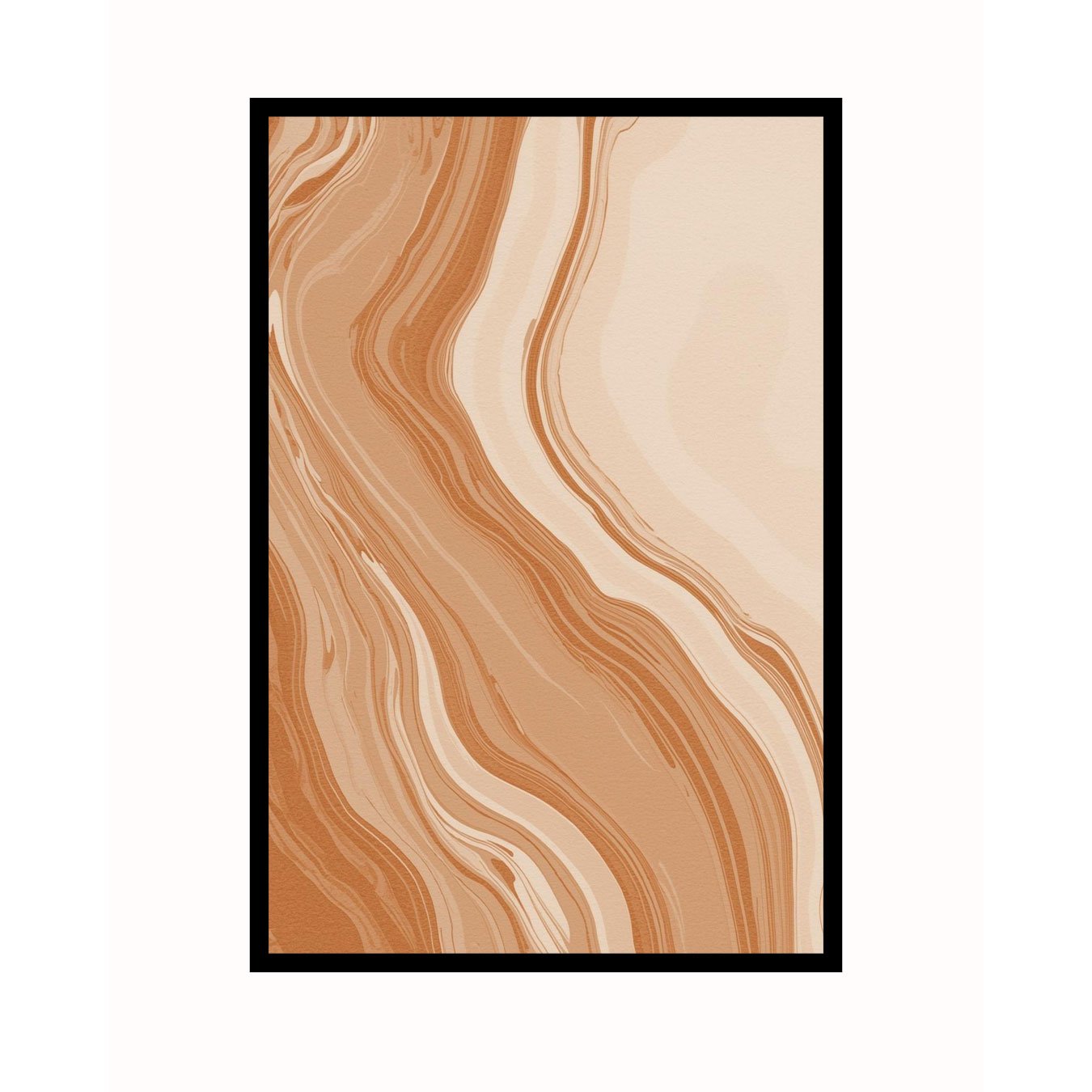 O Quadro Abstrato Marmorizado em Tons de Terracota Laranja Queimado e Pêssego é uma peça vibrante que traduz a fluidez das texturas naturais para o design contemporâneo. Com um padrão que remete ao marmorizado orgânico, a obra apresenta linhas onduladas que criam uma sensação de movimento constante e profundidade visual.