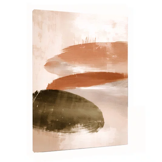 O Quadro Abstrato Orgânico em Tons Terrosos Verde Oliva e Terracota Moderno traz uma composição contemporânea com formas orgânicas e pinceladas amplas, criando um visual equilibrado entre suavidade e presença. A obra se constrói em camadas, com um fundo claro em creme/off-white que valoriza os contrastes dos elementos principais em verde oliva profundo e terracota queimado, além de transições sutis em taupe e cinza.