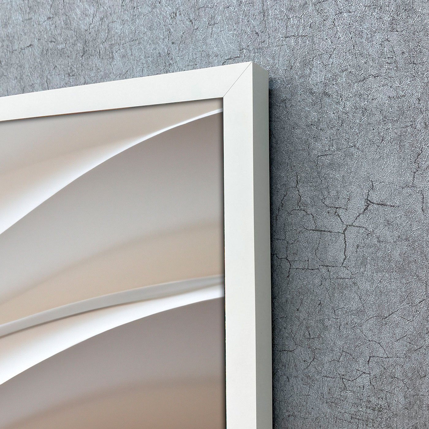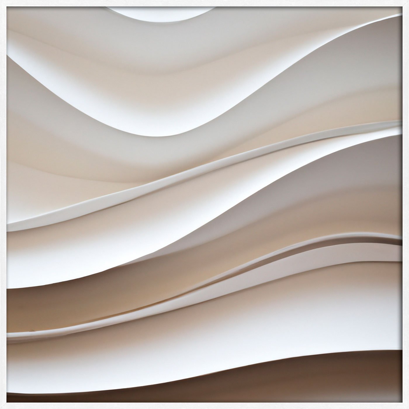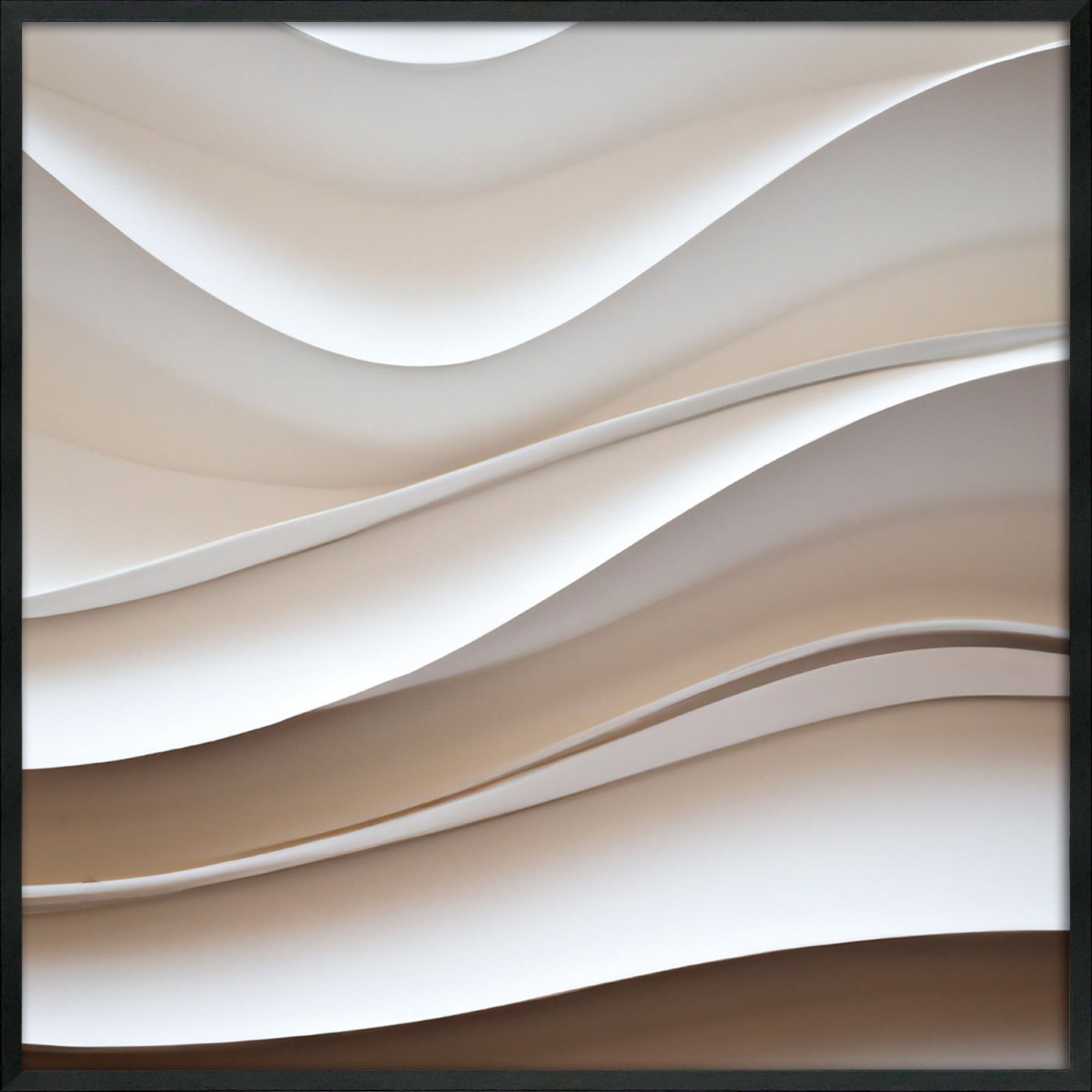 A arte apresenta uma composição fluida e harmoniosa, onde ondas ou dunas abstratas se desenrolam suavemente, criando uma sensação de movimento delicado e contínuo. A beleza reside na sua capacidade de evocar a calma do oceano ou a quietude de paisagens desérticas, sem ser literal, permitindo que a imaginação flua livremente.