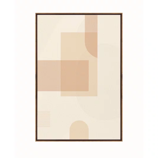 Quadro Arte Abstrata Minimalista Bege Geométrico com Curvas Decoração Moderna