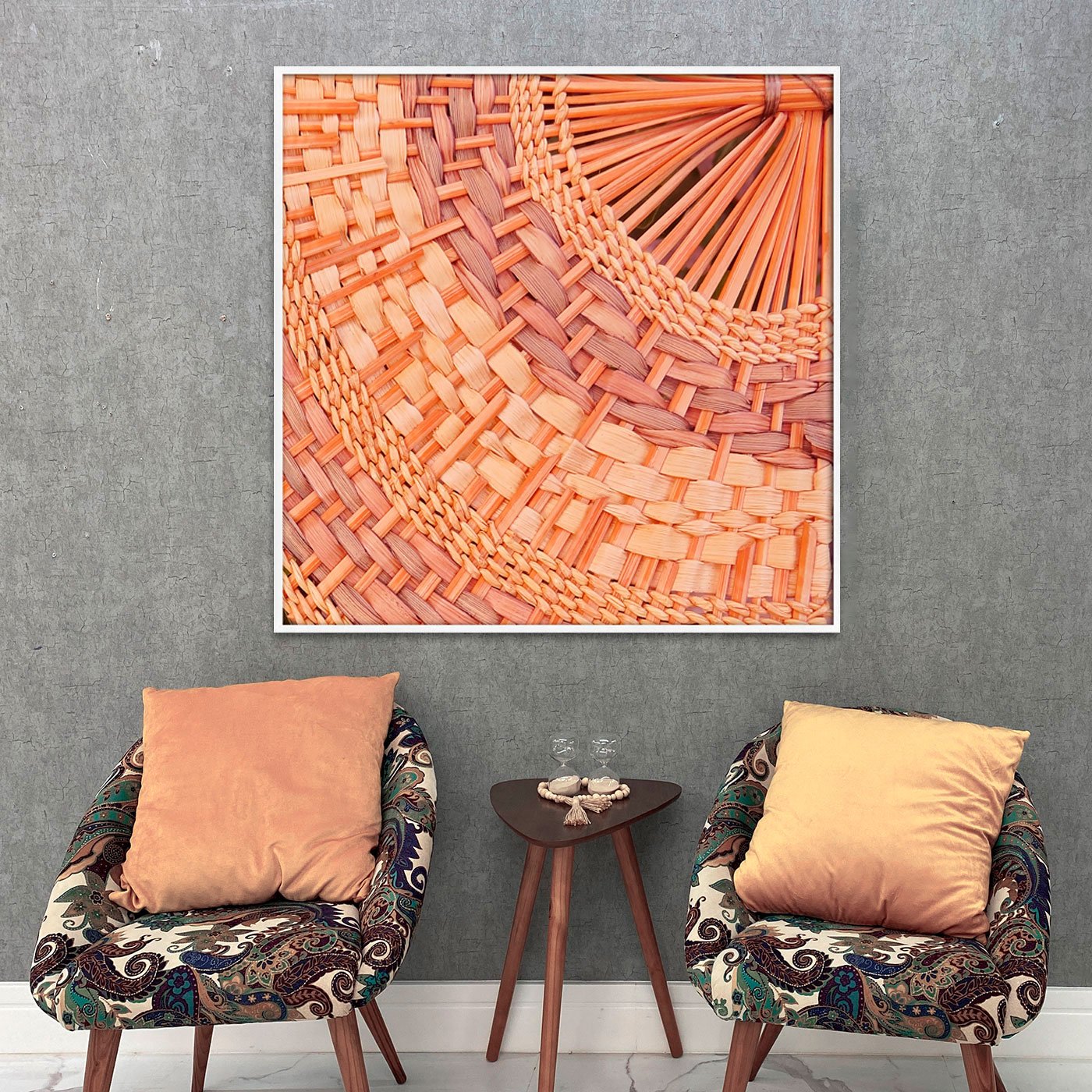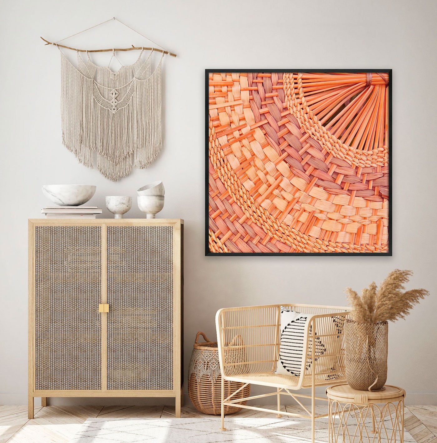 Quadro Decorativo Estilo Arte Artesanal em Fibras Naturais com Moldura e Vidro