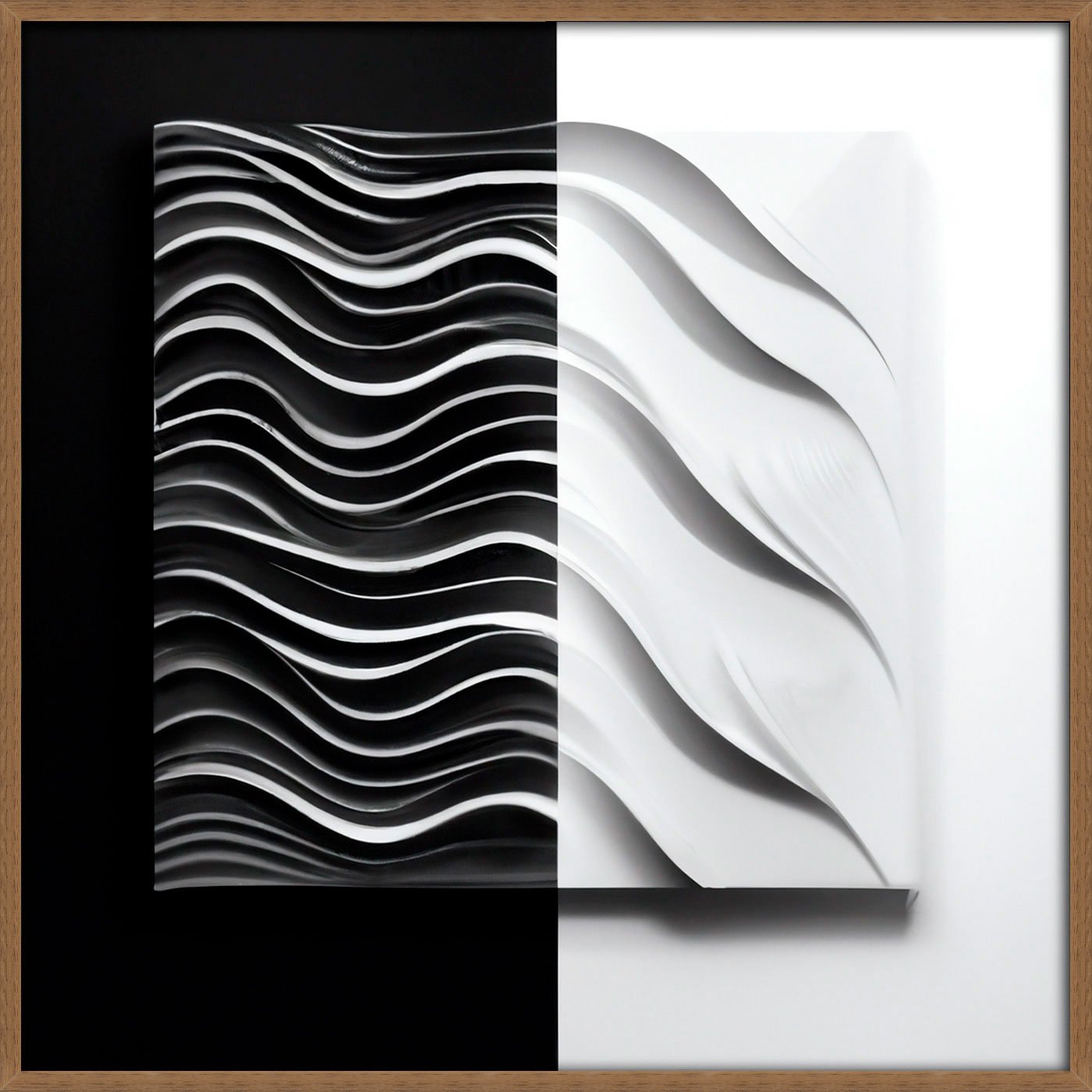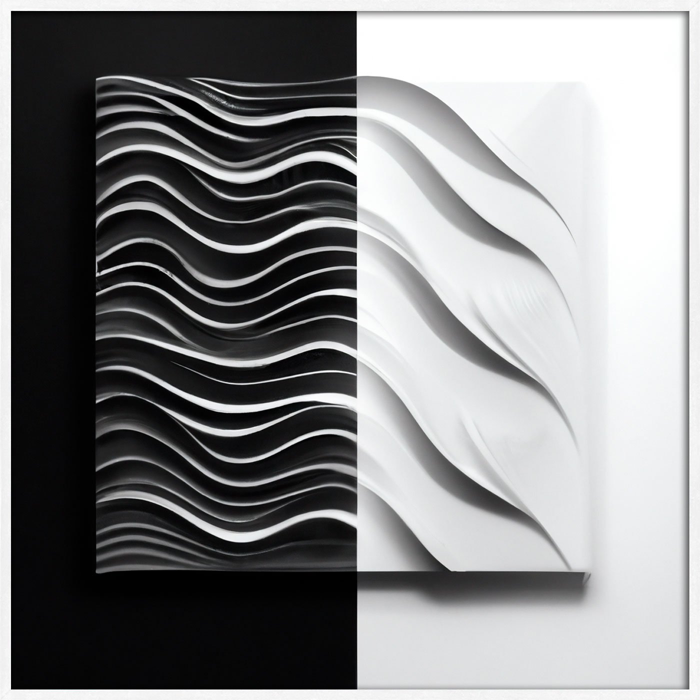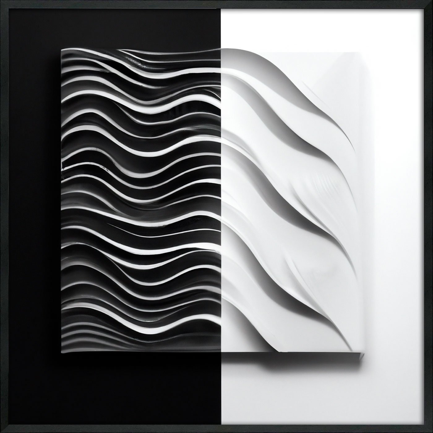 O coração deste design reside no seu contraste marcante. A interação entre tons profundos de preto, a luminosidade do branco e os matizes cinzentos intermediários não são apenas um jogo de cores, mas um diálogo entre luz e sombra, profundidade e superfície. Essa paleta monocromática confere à peça uma atemporalidade e uma versatilidade ímpares, permitindo que ela se harmonize com uma vasta gama de interiores, desde os mais minimalistas até os de inspiração industrial ou escandinava.