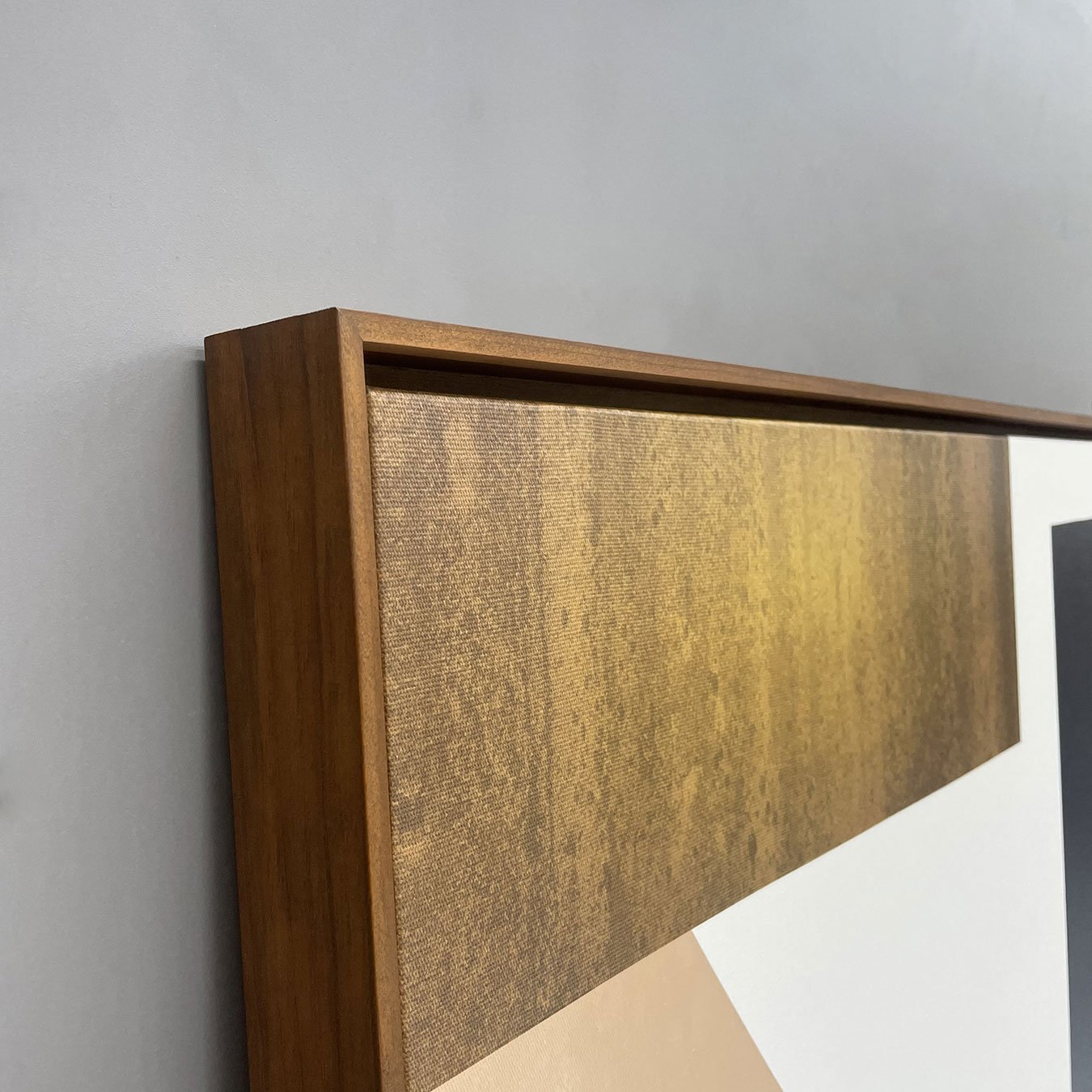 Quadro decorativo abstrato geométrico, tela canvas com moldura na cor mel.